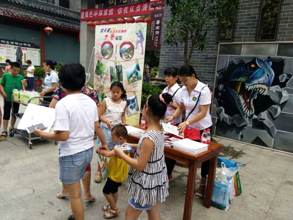 活动现场人潮涌动,气氛热烈。由嘉言妙语少儿口才带来的诗朗诵《宝天曼之歌》赢得大家连连称赞,今生金画室展出的三百余块以宝天曼风光为主题的精美绘画作品吸引了三千余名观众驻足观看。同时,宝天曼景区设置了咨询台,由景区旅游咨询员向在场观众发放宣传彩页、画册,赠送小扇子等礼品。