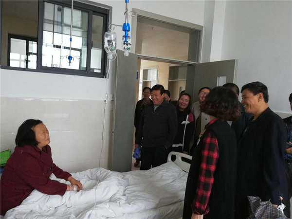 在看望贫困患者张学红时,贾苗亲切地询问道:“老人家,您现在病情好些了没有啊?觉得住院环境怎么样?住院过程中缴费了没有呀?”张学红热泪盈眶:“我现在感觉好多啦,在这住院感觉很好,已经住院8天了,没有交任何费用就让我先治病。是武医生救了我的命,武医生技术好,态度好,比我亲儿子还亲。感谢党、感谢习近平,是党的政策好啊!让我们穷人也能看得起病。谢谢你们!”这是患者发自内心的感叹。赵院长随即说道,“老人家,住院过程中有任何问题请及时跟我或其他医务人员反映,以利于我们及时改进,更好的开展工作。”