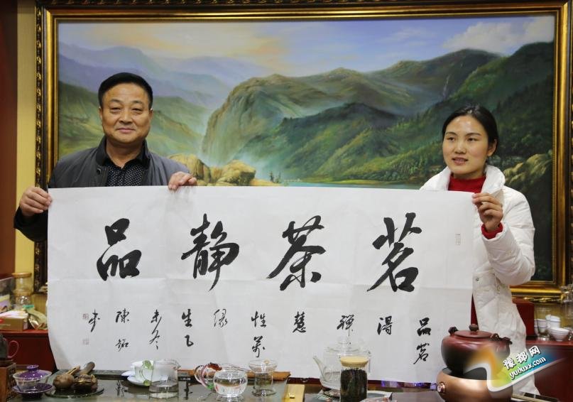 品鉴会上,中国著名花鸟画家王安民、书法家陈铭现场将两幅书画作品赠予庄主姜俊宇女士,感谢她为大家带来这么好的红茶。
