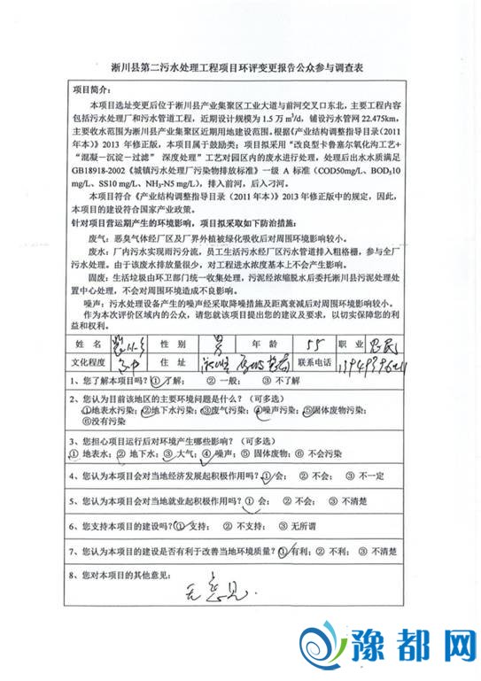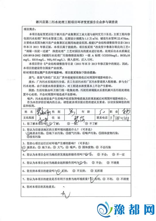 《淅川县第二污水处理工程项目环评变更报告公众参与情况说明》由河南新闻网-豫都网提供,转载请注明出处:http://nanyang.yuduxx.com/xichuan/418567.html,谢谢合作!